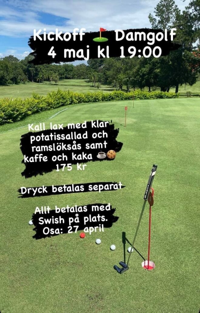 4 maj bjuder vi i damkommittén in till uppstartskväll där vi äter gott, umgås och där vi informerar om årets verksamhet. 2022 blev vi fler tjejer i klubben som träffades, tränade och spelade tillsammans. Jättekul. Nu är vi laddade för en ny, innehållsrik och rolig golfsäsong 2023. Damkommittén | Mjölby Golfklubb (mjolbygk.se) Gå gärna med…